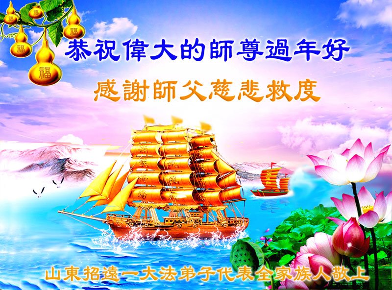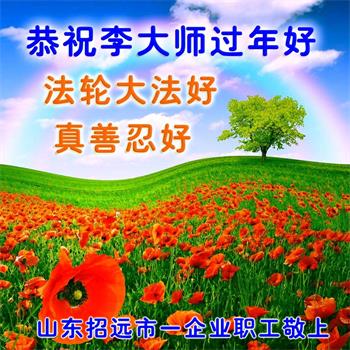 伟大师尊新年好 正法洪势已来到 邪魔乱鬼全遭报 师尊慈悲众生笑 救命大恩无法报 衷心祝师新年好 三件事情定做好 随师回家亲人找 山东省烟台市招远市农村大法弟子向师尊问候,恭祝慈悲伟大的师尊过年好!弟子跪拜!