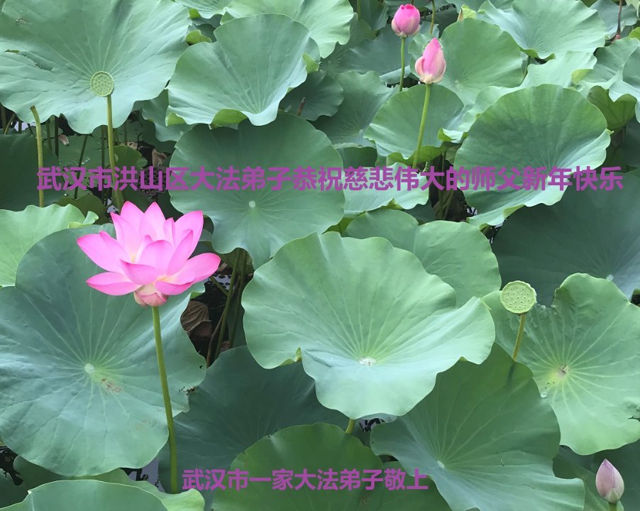 湖北省武汉市一家大法弟子恭祝慈悲伟大的师父新年快乐!