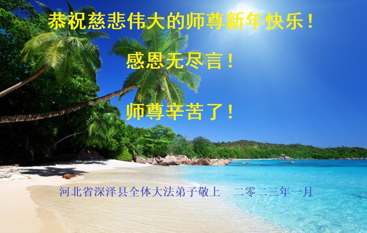 在新的一年里,学好法,做好三件事,抓紧救人。 河北省石家庄市深泽县全体大法弟子恭祝师尊新年快乐!