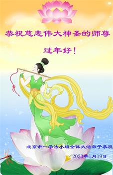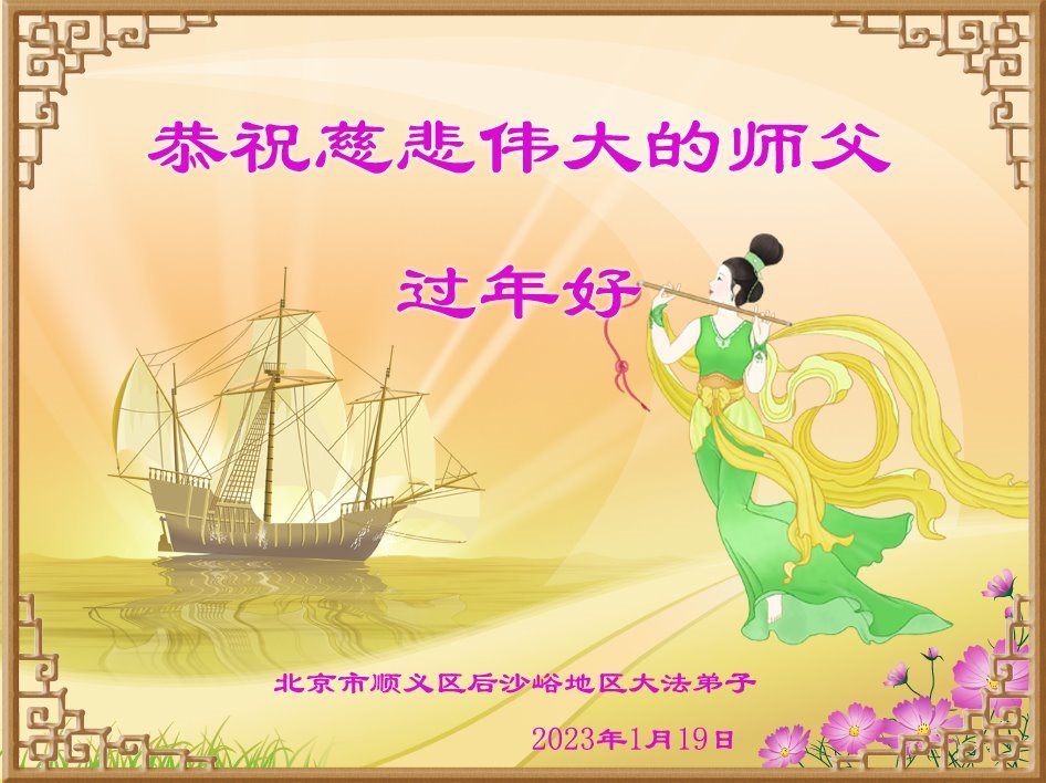 【明慧网二零二三年一月二十三日】 北京市回龙观地区一大法弟子恭祝慈悲伟大的师尊过年好!弟子给师父拜年了!感恩师尊慈悲苦度!