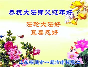 【明慧网二零二三年一月二十三日】 山东省烟台市招远市一超市老板恭祝大法师父过年好!