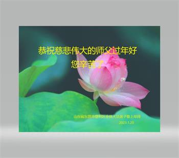 衷心恭祝慈悲伟大的师尊过年好!师尊,您为众生、为我们太辛苦了! 山东威海市一大法弟子跪拜,合十 山东省莱芜大法弟子恭祝师尊新年快乐!