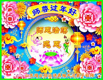 恭祝师尊新年好!师父辛苦了!谢谢师父慈悲救度! 泰安大法弟子携全家敬上 山东省烟台市芝罘区大法弟子给师尊拜年!