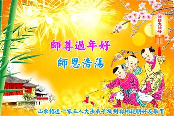 山东省东营市垦利区大法弟子携全家恭祝慈悲伟大的师父过年好!您辛苦了! 山东省烟台市大法弟子恭祝师父过年好!