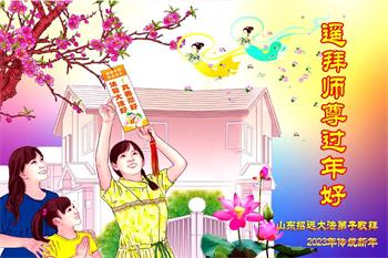师尊您辛苦了!弟子跪拜慈悲伟大的师尊!给师父拜年! 弟子无法表达对师尊的无限感恩。弟子一定不忘自己的使命,听师父的话。盼望师父早日回归中国大陆,弟子想念您。 师尊您辛苦了! 山东省烟台市莱阳市一对母女大法弟子恭祝师尊过年好!
