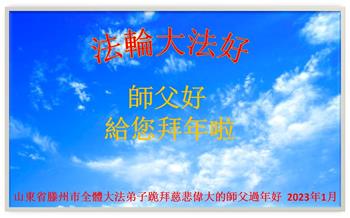 恭祝师父过年好! 师父伟大法伟大 惊世大法传天下 弟子不负师恩重 众生得救展奇葩 山东龙口一学法小组大法弟子敬上 2023年1月19日 山东省枣庄市滕州市大法弟子恭祝慈悲伟大的师父过年好!
