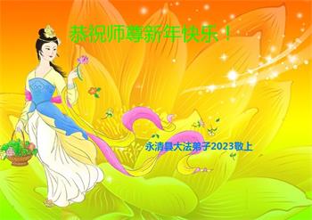 经过这场瘟疫,众生也都在盼望得救,弟子们更知救人急,并没有因离除夕越来越近而放松救人的脚步,而是更加从法上精進,决心坚修到底跟师父回家。 弟子们恭祝慈悲伟大的师尊过年好!叩拜师尊! 河北衡水大法弟子路北大法弟子敬上 二零二三年一月十六日 河北省沧州市河间市一青年大法弟子恭祝师尊新年快乐!