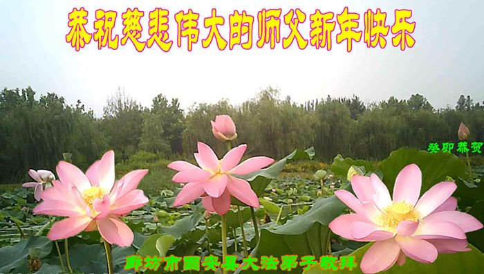 我们恭祝师尊新年快乐!师父新年好!师父辛苦了! 河北省沧州市河间市全体大法弟子恭祝师父新年快乐!