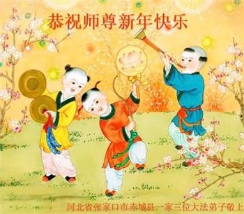 河北省张家口市赤城县一家三位大法弟子恭祝师尊新年好!