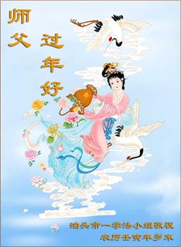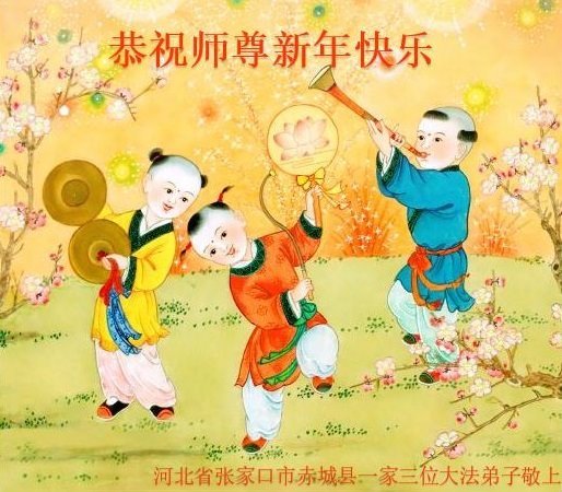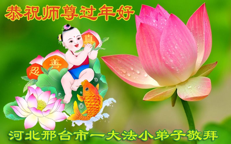 师父过年好!师父您辛苦了!弟子给您拜年啦!感恩师父慈悲苦度,谢谢师父救度洪恩! 我们知道师父为救我们承受的苦难用汪洋大海也无法形容,每当想起师父救度我们的艰辛,弟子常常泪流满面,只要心中有法在修炼的这条路上,再苦我们也能忍受,再难我们也能坚定信念不动摇。请师父放心,弟子会加倍努力,做好您所要求的。 河北省邢台市平乡县的一名新学员及两个孩子恭祝师尊新年快乐!