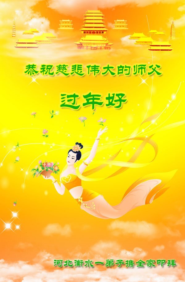 恭祝慈悲伟大的师尊过年好! 叩谢师尊的无量慈悲,没有放弃我这个不争气的弟子,一直慈悲点化引领我走正修炼的路,弟子一定听师父的话做好三件事,多救人,完成使命。 河北衡水大法弟子及路北大法弟子恭祝师尊过年好!