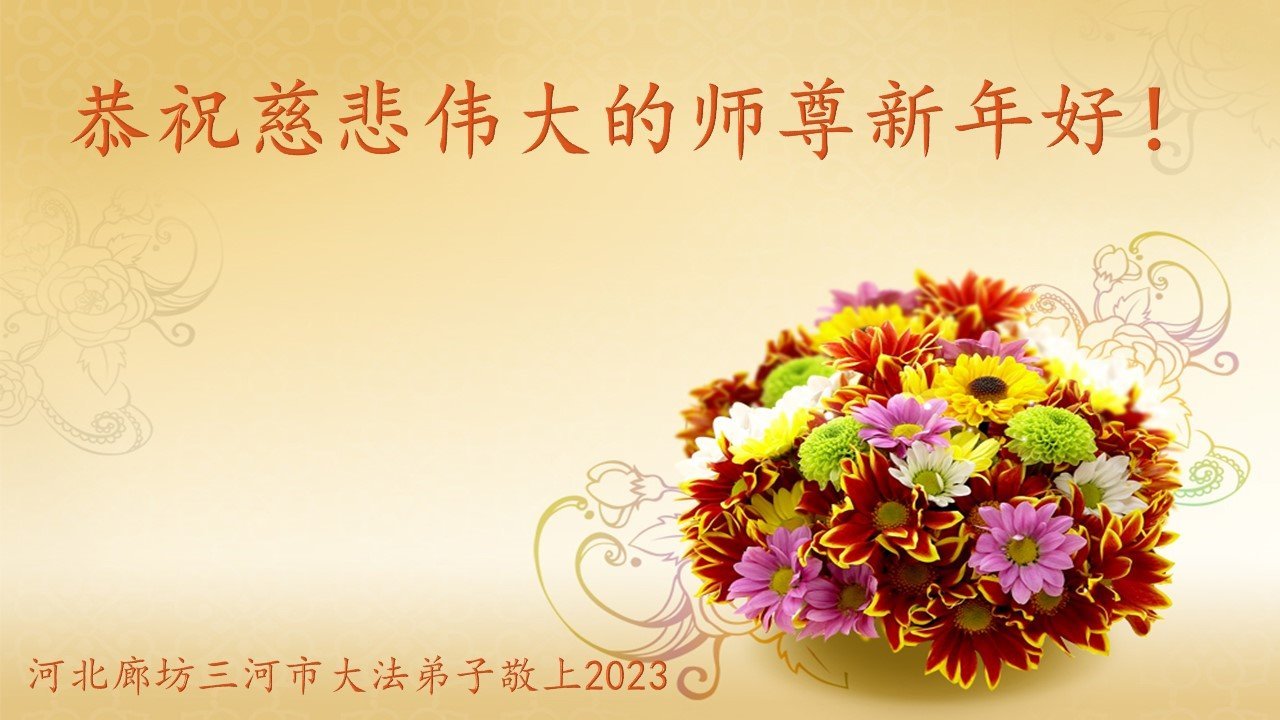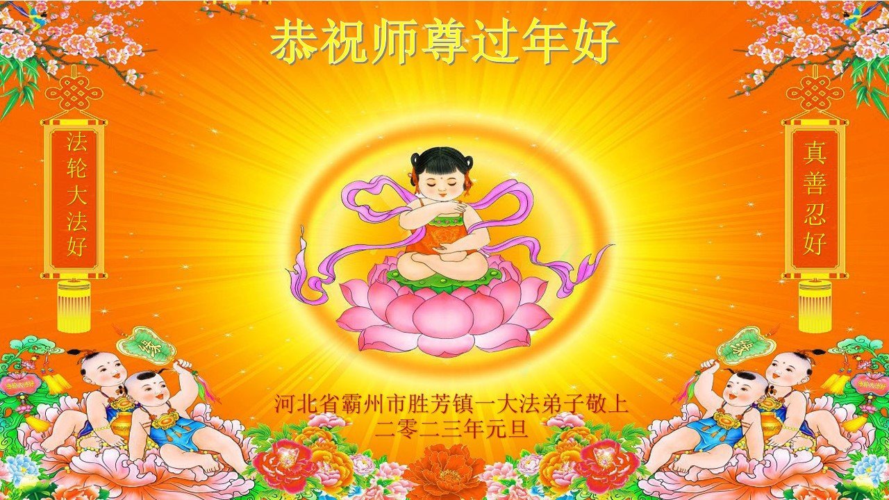 在新的一年里、在最后不多时间里,弟子会努力的多学法、向内找实修自己,尽快修掉安逸心,做好三件事,多救人,随师还。 河北廊坊三河市大法弟子 二零二三年一月十七日 河北省廊坊市霸州市胜芳镇大法弟子恭祝师尊新年好!