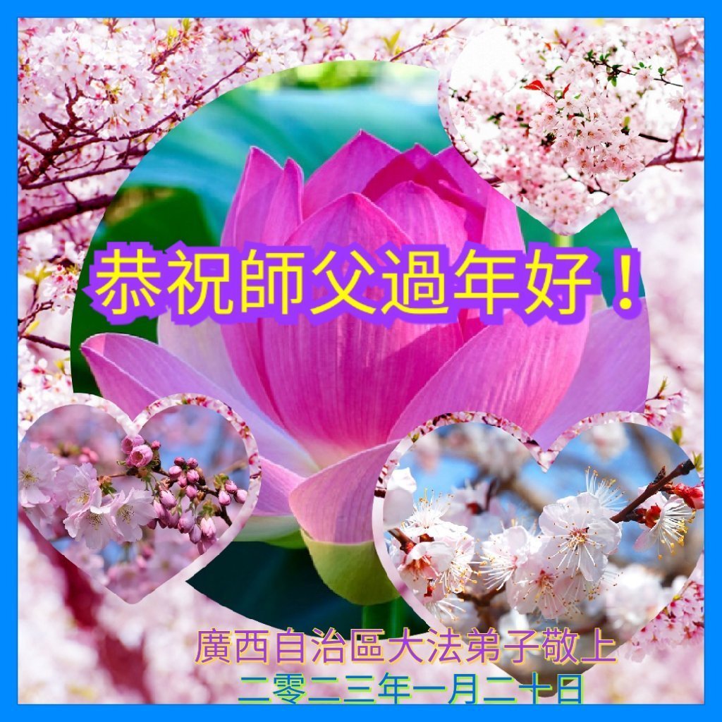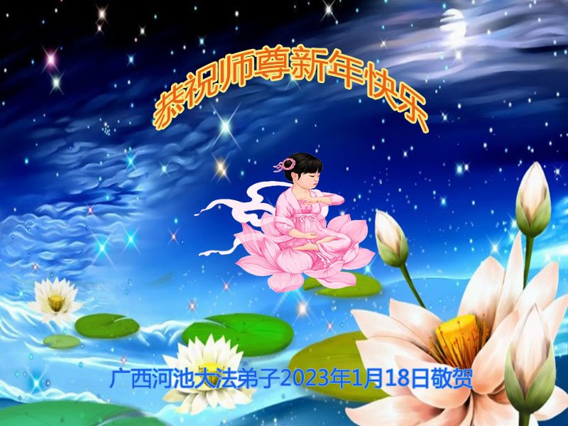 2023年我们要努力修去执着,做好三件事,希望能让师尊少操心。 广西河池大法弟子恭祝师尊新年快乐!