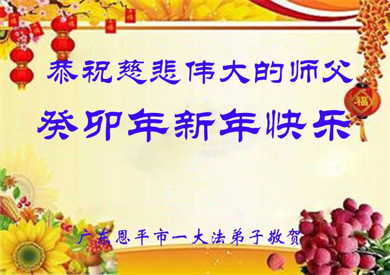 【明慧网二零二三年一月二十三日】 广东省江门市恩平市一大法弟子恭祝慈悲伟大的师父新年快乐!