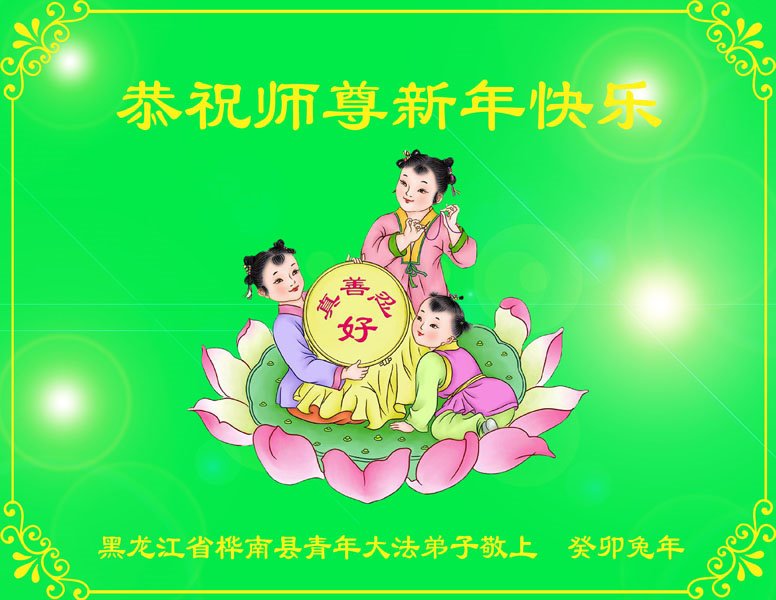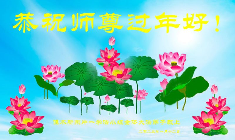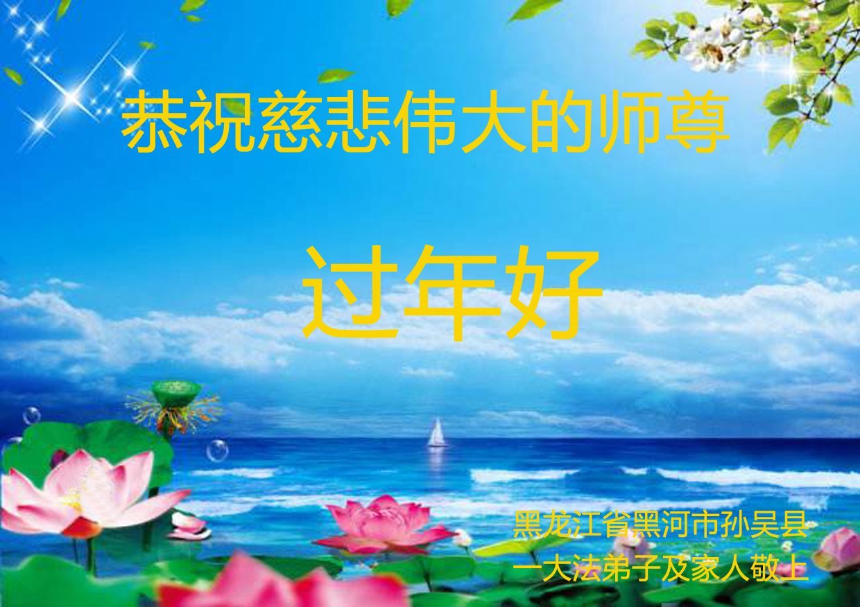 感恩师父!感恩大法!弟子用尽人类的语言也无法表达师尊救度之恩之万万分之一。 黑龙江省佳木斯市东片一学法小组全体大法弟子恭祝师尊过年好!