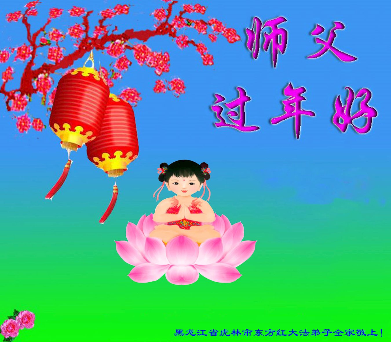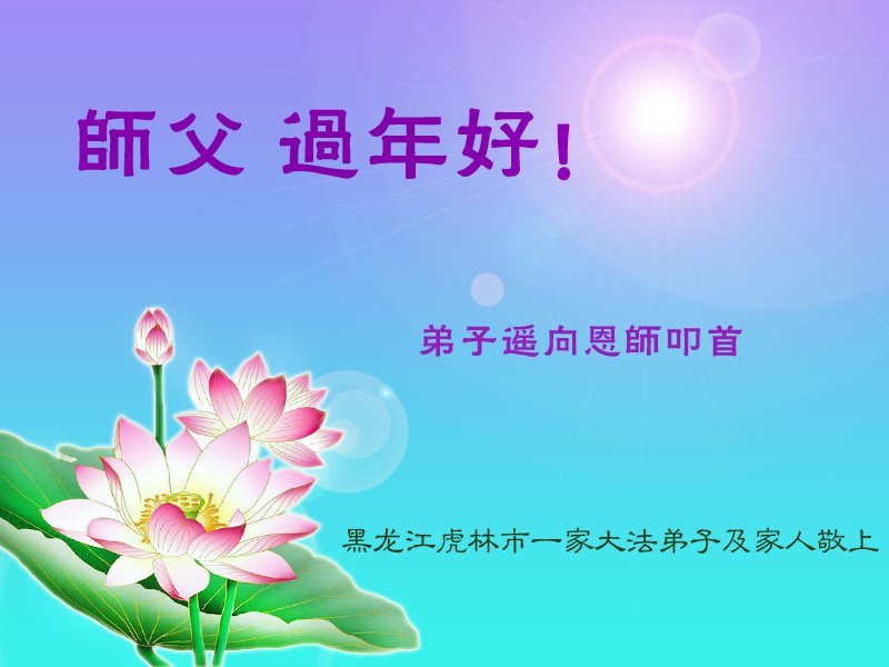 恭祝师父新年快乐!师父辛苦了! 弟子在新年会做好三件事,修好自己,更加精進。感恩师尊! 黑龙江省鸡西市虎林市东方红大法弟子全家恭祝师父过年好!