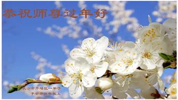 师尊新年好!弟子感恩师尊的慈悲救度,是您把我一个业力满身、自私自利、为私为我的人,改变成为今天正法时期的大法弟子,明白了自己的使命。弟子一定要在有限的时间里做好三件事,请师尊放心。 弟子叩拜恩师 湖南省长沙县全体大法弟子恭祝师尊新年快乐!