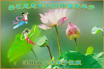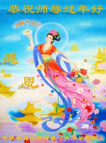 感恩师尊慈悲救度!弟子们知道救人时间紧迫,互相督促,努力学法提高心性,修好自己才能多救人。 辽宁省沈阳市大东区一大法弟子恭祝慈悲伟大的师尊过年好!