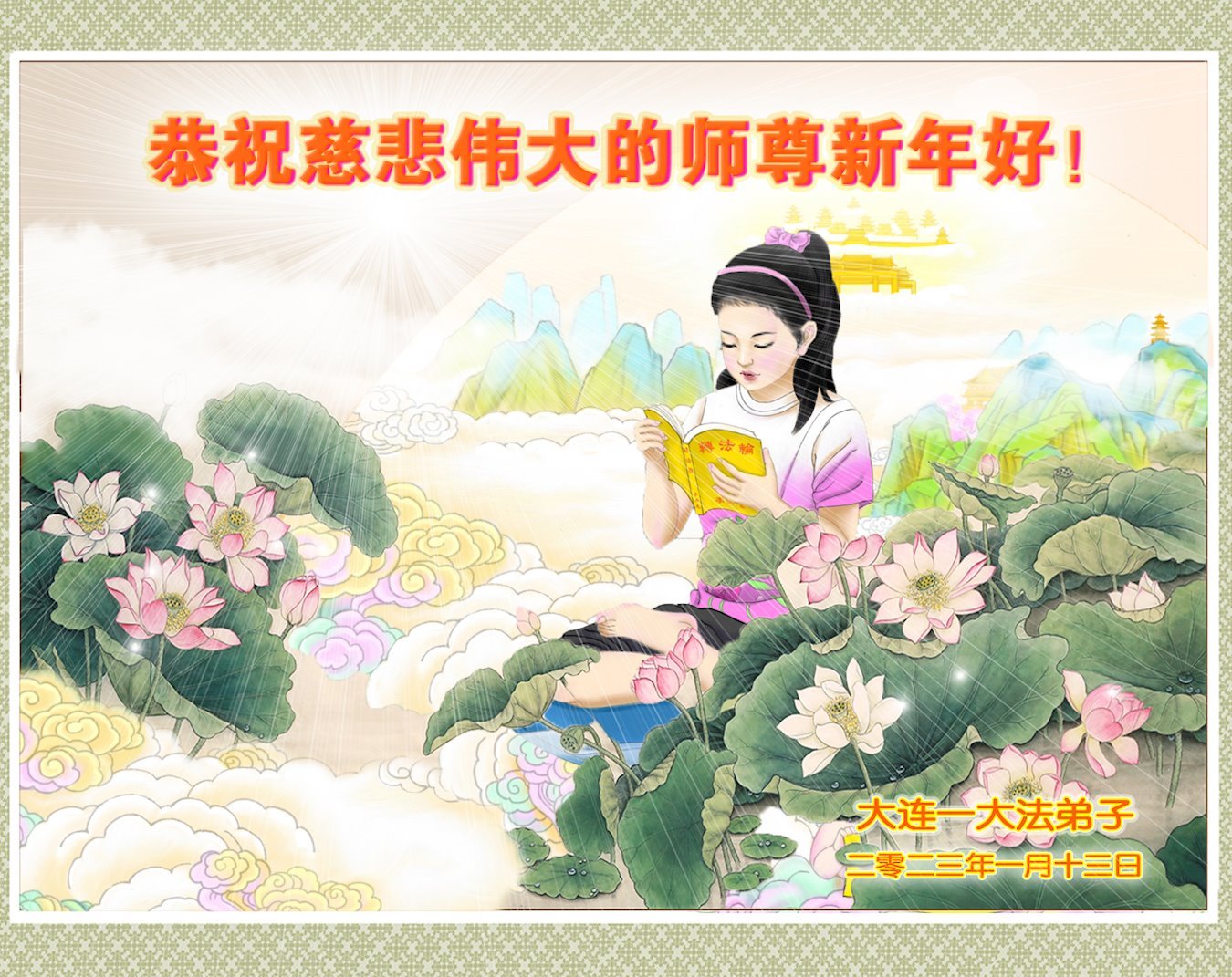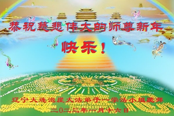 辽宁省大连市七位大法弟子叩拜:恭祝慈悲伟大的师尊过年好! 感恩师尊洪大的慈悲与救度! 辽宁省大连市沙河口区三个学法小组大法弟子恭祝慈悲伟大的师父新年快乐!