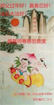 辽宁盘锦一家三口大法弟子恭祝师尊过年好!谢谢师尊慈悲救度!