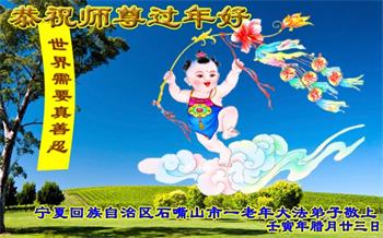 宁夏回族自治区石嘴山市惠农区一老年大法弟子恭祝师尊过年好!