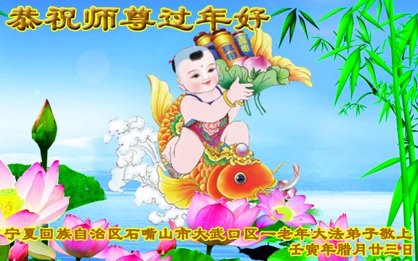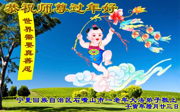 恭祝伟大慈悲的师尊新年快乐!法轮大法好,真善忍好! 宁夏回族自治区石嘴山市一老年大法弟子恭祝师尊过年好!