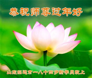 山东省烟台市招远市一八十四岁新学员恭祝师尊过年好!