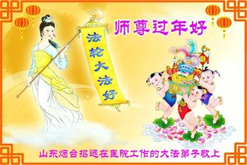 我是山东省平原县一老年大法弟子,我代表全家向慈悲伟大的师尊问好!祝师父新年快乐!在新的一年里,弟子一定修好自己,做好大法弟子该做的,跟师父回家。 山东烟台招远在医院工作的大法弟子恭祝师尊过年好!