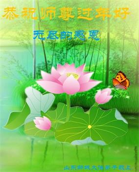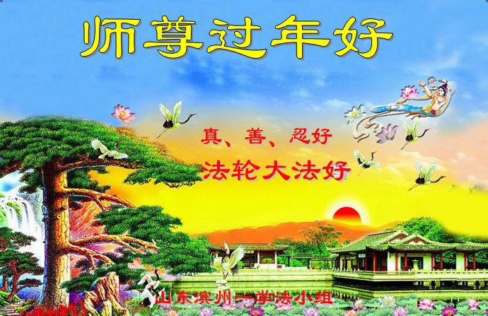 中共病毒蔓延之时,我们一定按照师父的要求做好三件事,修好自己多救人!借此机会感谢师尊对大法弟子及家人的慈悲照看,家人都身体健康,工作顺利,全家沐浴在浩荡佛恩之中,无比幸福! 再次感谢师尊对弟子和世人的付出,恭祝师尊新年快乐! 山东滨州滨城区一学法小组大法弟子恭祝师尊过年好!
