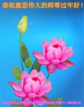 我们一定会坚定实修,讲真相救世人,完成使命,跟师父回家。 陕西省西安市一名大法弟子恭祝师父新年好!