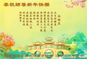 师父辛苦了!感恩师父洪大的慈悲! 二零二三年即将来临,我们一家大法弟子一定做好三件事,让更多的生命得救。 感恩师尊一路慈悲保护!弟子叩拜师尊新年好!合十 四川内江市一家大法弟子敬上 二零二三年一月十九日 四川省南充市顺庆区俩姐妹大法弟子恭祝师父新年好!