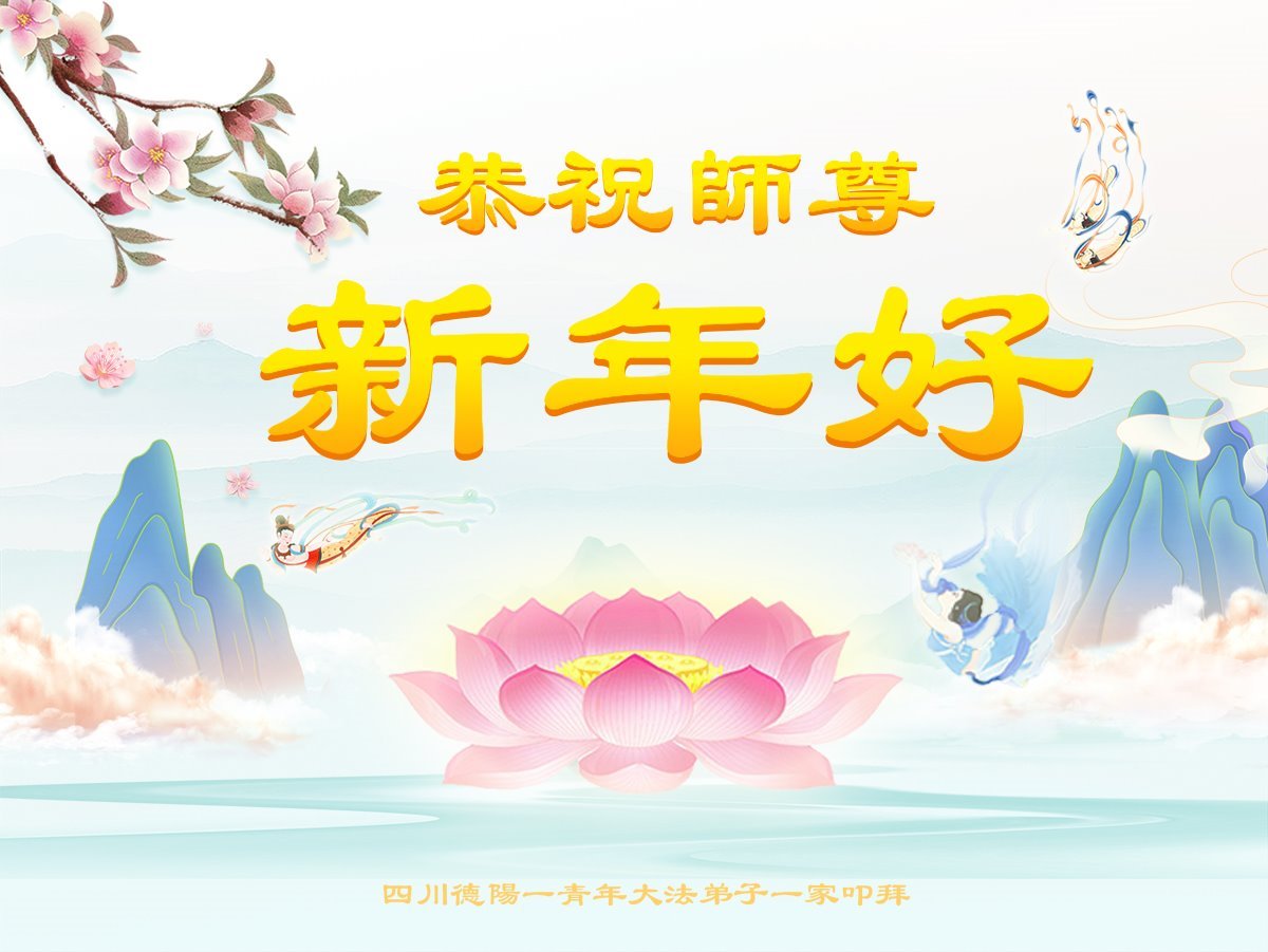 【明慧网二零二三年一月二十三日】 四川德阳一青年大法弟子一家恭祝师尊新年好!