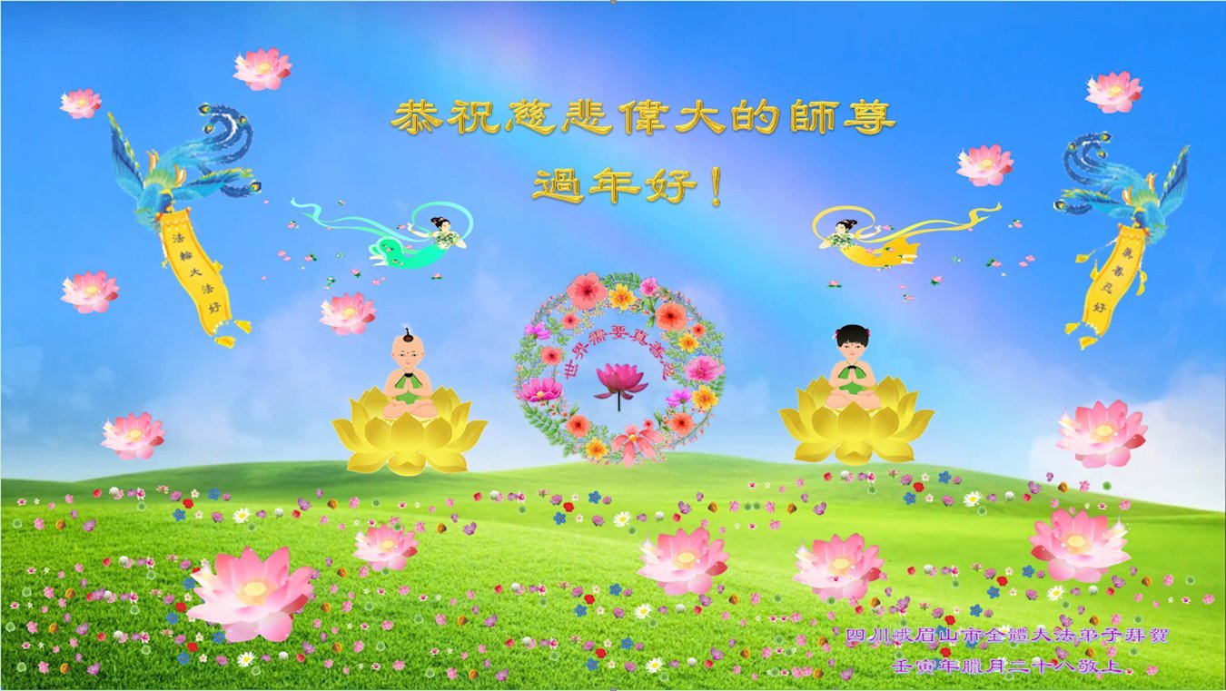 四川省乐山市峨眉山市全体大法弟子恭祝慈悲伟大的师尊新年快乐!