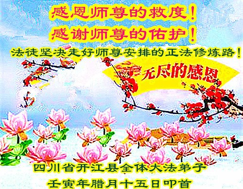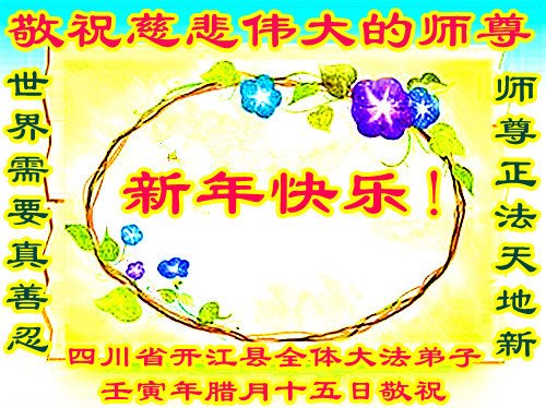 感恩师尊的救度!感谢师尊的佑护!坚决走好师尊安排的正法修炼路。 四川省达州市开江县全体大法弟子恭祝慈悲伟大的师尊新年好!