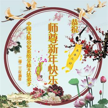 中国大陆公安系统全体大法弟子恭祝师尊新年快乐! 中国大陆公安系统全体大法弟子恭贺 大陆公安大法弟子恭祝慈悲伟大的师尊新年快乐!