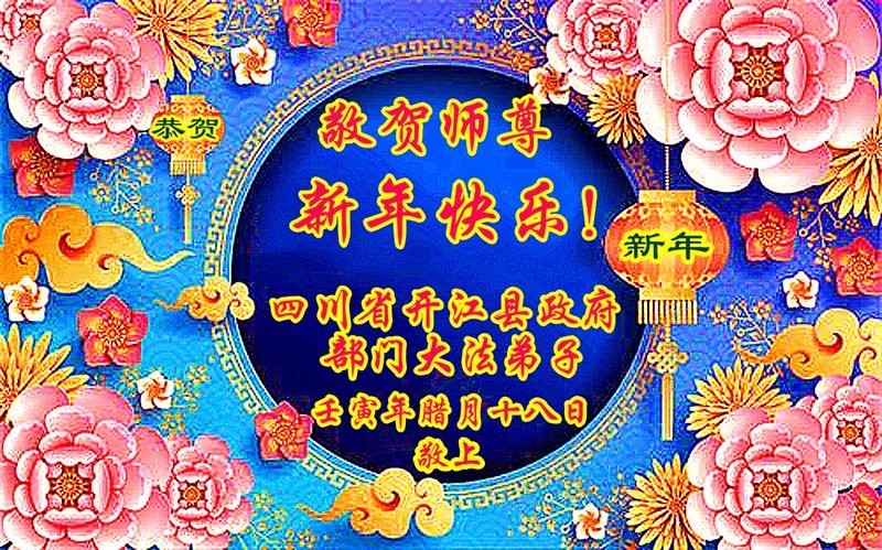 四川省达州市开江县政府部门大法弟子向慈悲伟大的师尊拜年!