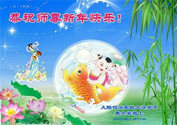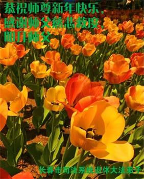 师尊,弟子对您的恩无以言表!唯有实修精進,努力救众生,不辜负您用巨大承受换来的无比宝贵时间!在新的一年里,弟子定多学法,用心提高自己的心性,用心救众生,弟子谨记师尊的教诲!弟子叩拜师尊! 吉林省长春司法系统退休大法弟子恭祝师尊新年快乐!