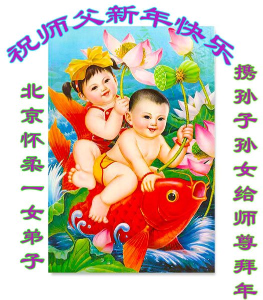 北京市怀柔区一名大法弟子携孙子孙女恭祝师父新年快乐!