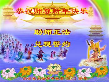 在新的一年里弟子们会更加精進,做好三件事,救度更多的众生,圆满随师还。 天津市武清区下伍旗镇一大法弟子恭祝慈悲伟大的师尊新年快乐!