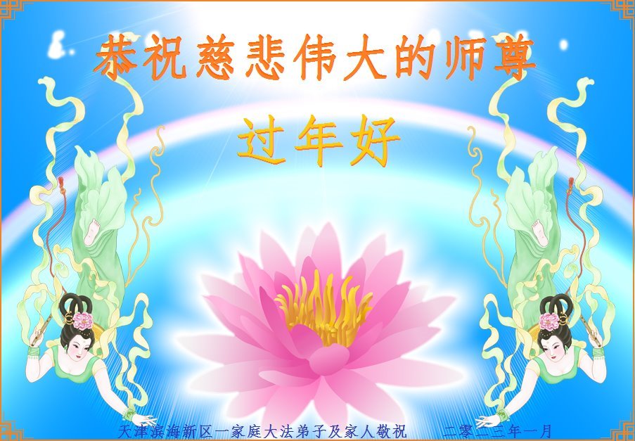恭祝慈悲伟大的师尊过年好!弟子跪拜师尊!合十 天津市宝坻区大法弟子全家给师父拜年!