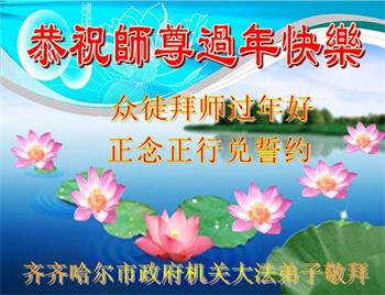 【明慧网二零二三年一月二十三日】 黑龙江省齐齐哈尔市政府机关大法弟子恭祝伟大师尊过年快乐!