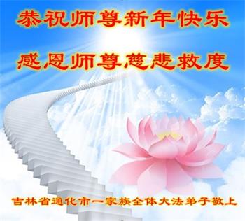 在新的一年来临之际,恭祝师尊新年快乐! 感恩师尊把我们从地狱中救起洗净,感恩师尊在修炼的路上一直保护,新的一年里,弟子们一定做好三件事,勇猛精進,承担起救世人的责任,多救人,快救人,决不辜负师尊的慈悲苦度。叩谢师尊。 吉林省农安县一家老少三代五口大法弟子敬上 辽宁省大连市大法弟子恭祝师父过年好!