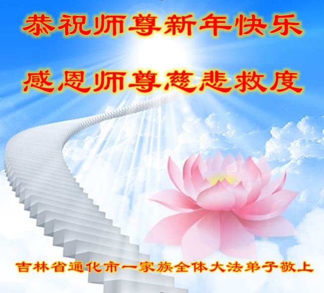 陕西汉中母子俩大法弟子恭祝伟大的师尊过年好!跪拜师尊!师尊您好! 在新的一年里,我们一定用心学法、用心发正念、用心多救人。珍惜师尊您用巨大的付出给我们延续下来的时间,不辱使命随师回家! 吉林省通化市一家族全体大法弟子恭祝慈悲伟大的师尊新年快乐!
