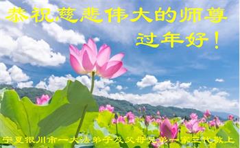 每逢佳节倍念恩师!万王之王下世度人,我们全家有幸得遇大法。新学员从好人做起,在大法中洗净自己。曾沉迷手机网络迷失方向,师尊不计弟子愚钝懒惰,慈悲救度一再给机会。自明法理后决心归正,修去名利心、逆反心、怨恨心等,家人同修齐心精進,学法、抄法以法为师,突破观念返本归真。坚定正念恒心修炼,整体配合做好三件事,清除党文化与共产邪灵毒素。 中共病毒横行肆虐中原大地疫情遍野,小花平稳有序绽放,眼下正是救人利器,告诉世人退出党团队组织保命保平安,并诚念法轮大法好,心中牢记真善忍,得天赐洪福神庇佑,佛光普照瘟疫消。人世间纵有万语千言也道不尽师恩浩荡,愿新的一年师尊多一份欣慰,少一份辛劳! 陵城区一大法弟子全家叩谢师恩! 宁夏回族自治区银川市一大法弟子及父母兄弟一家三代人恭祝慈悲伟大的师尊过年好!
