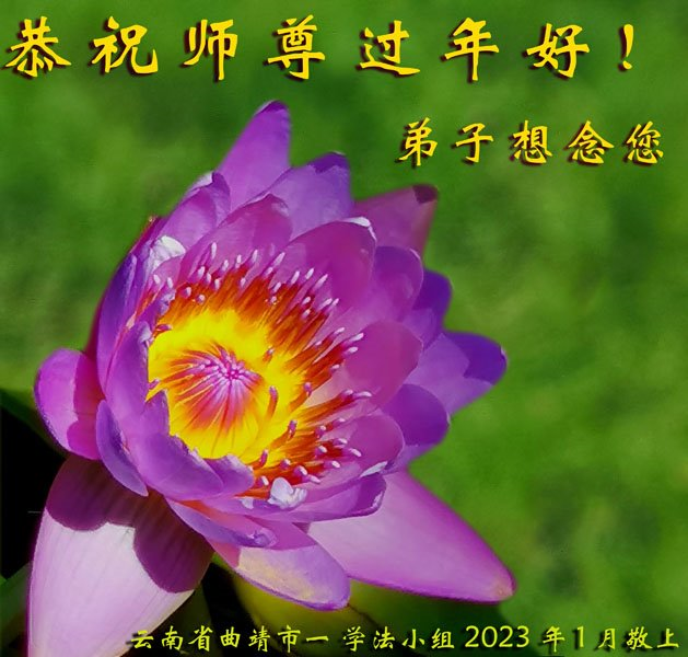 跨过了又一年风风雨雨,迎来了不平凡的二零二三年,那是师尊用无量承受为众生换来的珍贵机缘。师尊,谢谢您!您为众生辛苦了!您为弟子们辛苦了!在新的一年中,我们会更精進的做好三件事,抓紧兑现誓约,在剩下不多的时间里,不断的用大法归正自己,走好师尊安排的修炼路。让师父放心! 湘潭大法弟子一学法小组感谢师父慈悲救度!跪拜师尊! 合十 云南省曲靖市一学法小组恭祝师尊过年好!