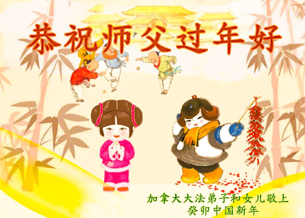 师父辛苦了!感恩师父洪大慈悲! 弟子要学好法,实实在在的修,去除党文化,去除现代观念行为,纯净自己,做好三件事,修成无私无我的正觉。 加拿大温哥华大法弟子和女儿敬上 加拿大多伦多一华人家庭恭祝师尊过年好!