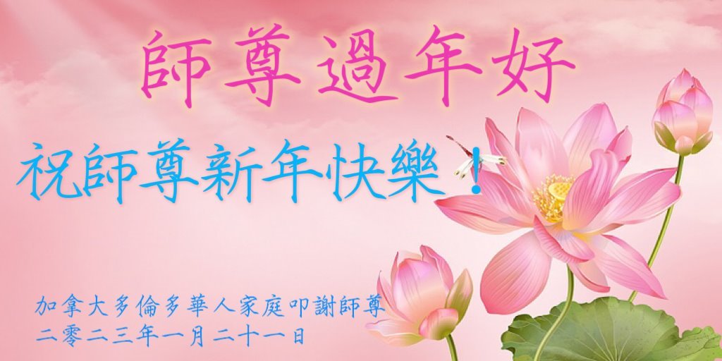 恭祝师父新年快乐!感恩师父的慈悲。 加拿大多伦多一华人家庭叩谢 二零二三年一月二十一日 加拿大多伦多大法弟子恭祝师尊过年好!