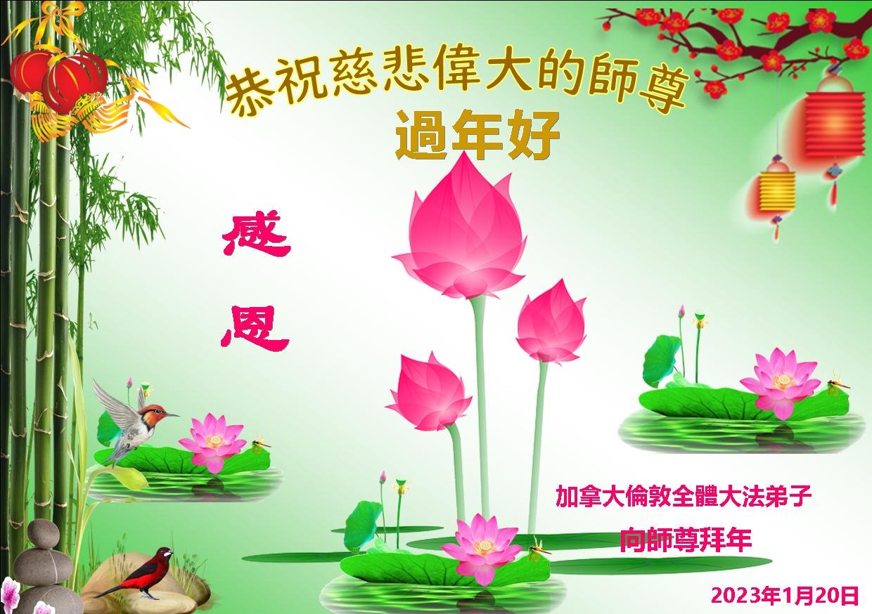 【明慧网二零二三年一月二十三日】 加拿大伦敦全体大法弟子向师父拜年!恭祝慈悲伟大的师尊过年好!