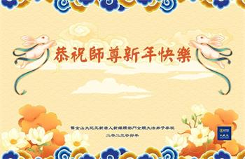 恭祝师尊过年好!弟子感恩师尊的慈悲救度和看护,给我机会能参与到大法项目中去救人,弟子会做好三件事,努力在项目中发挥作用去救人。 弟子叩拜师尊! 旧金山湾区全体大法弟子恭祝师父过年好!