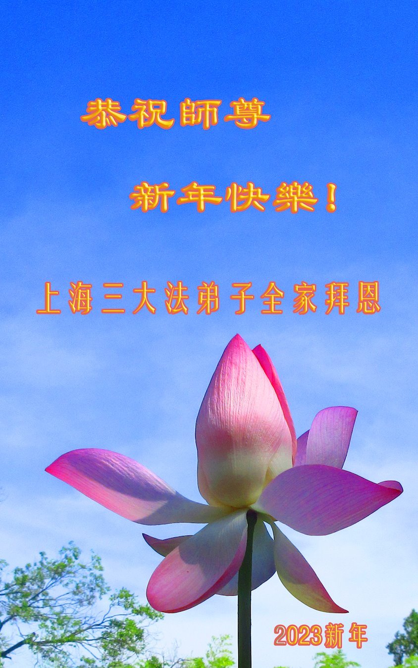 恭祝师父新年好!师父新年快乐! 感恩师父慈悲看护,苦度!让我们渡过一次次执着和难关,我们一定珍惜万古机缘,做好大法弟子的三件事情;在新的一年里,正念正行,精進实修,兑现誓约,好好救人兑现誓约。 上海三位大法弟子敬上 2023年 |